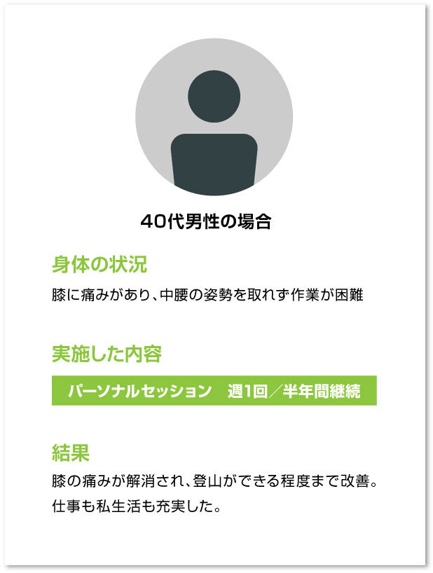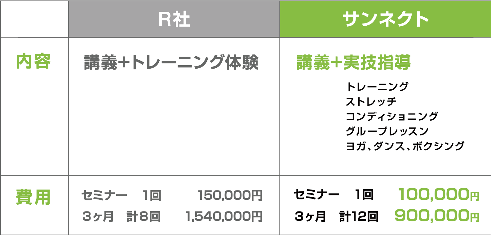 セミナーとは異なり、マンツーマンでトレーナーの施術も加わるため、さらなる効果が期待でいます。
